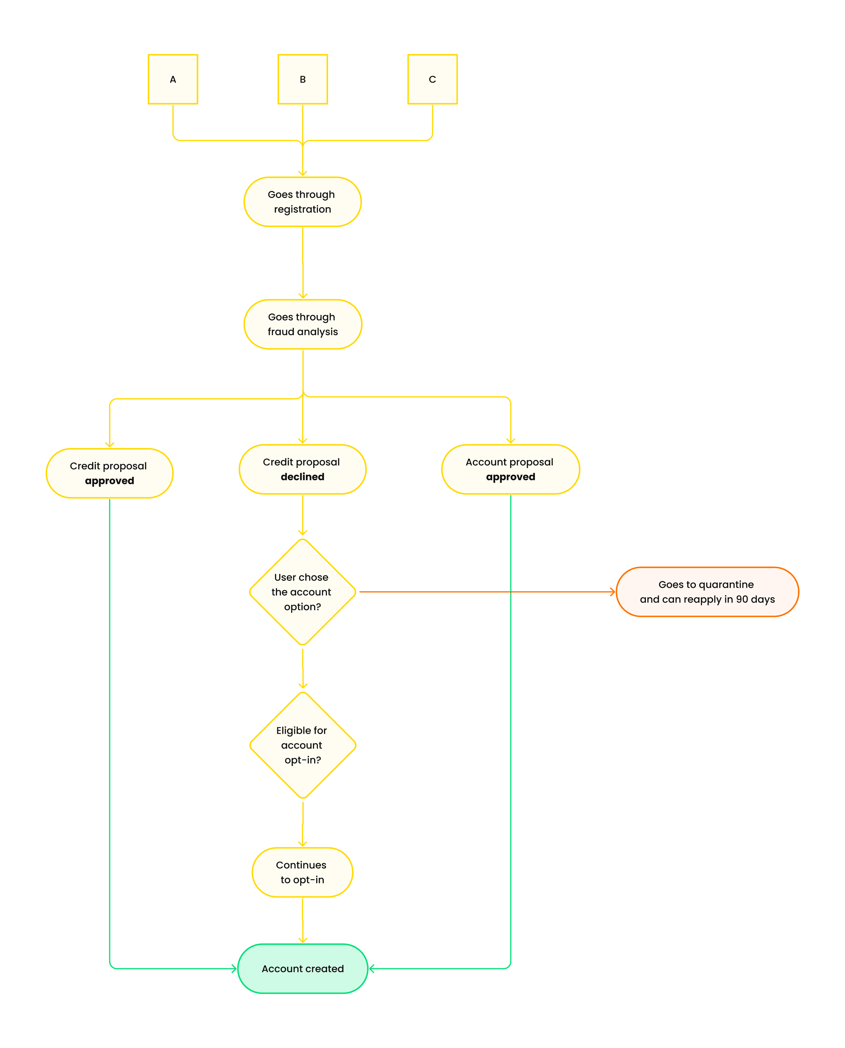 Regardless of their choice, users were still redirected to the existing credit or account flow, once they enter the app, they can activate or explore the products they previously selected.