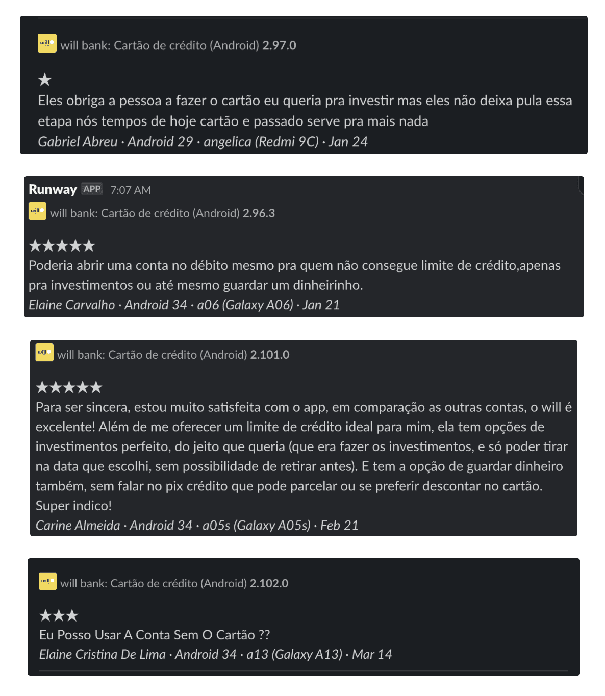We also monitored Google Play and App Store reviews to understand how users were talking about will. This helped us collect honest feedback from both new and declined users.