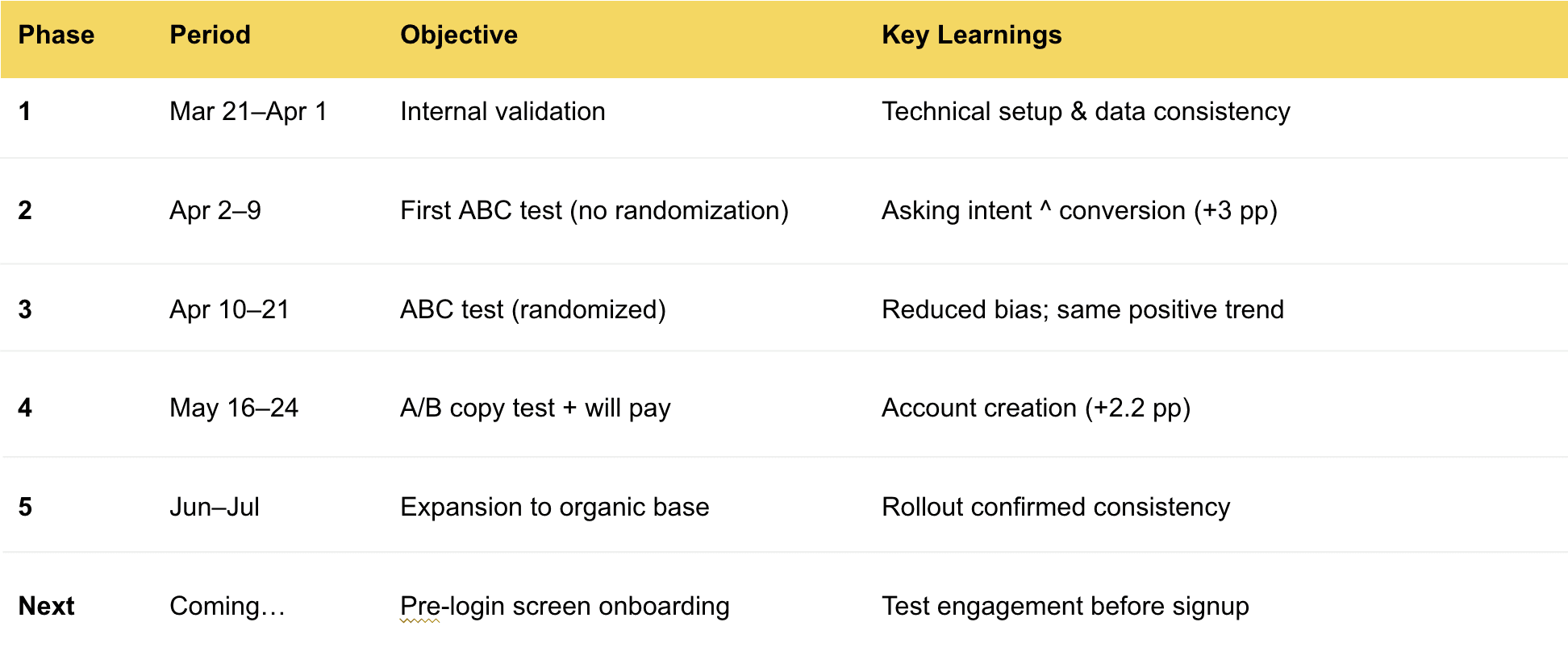 Finally, we supported each phase with A/B experiments to measure the real impact on conversion and engagement.